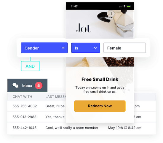 Influencing behavior and generating value from SMS marketing requires businesses to engage customers with relevant text messages. With SlickText, you can segment your customers and send personalized, targeted mass text message campaigns or have one-on-one conversations that build loyalty and drive action.
